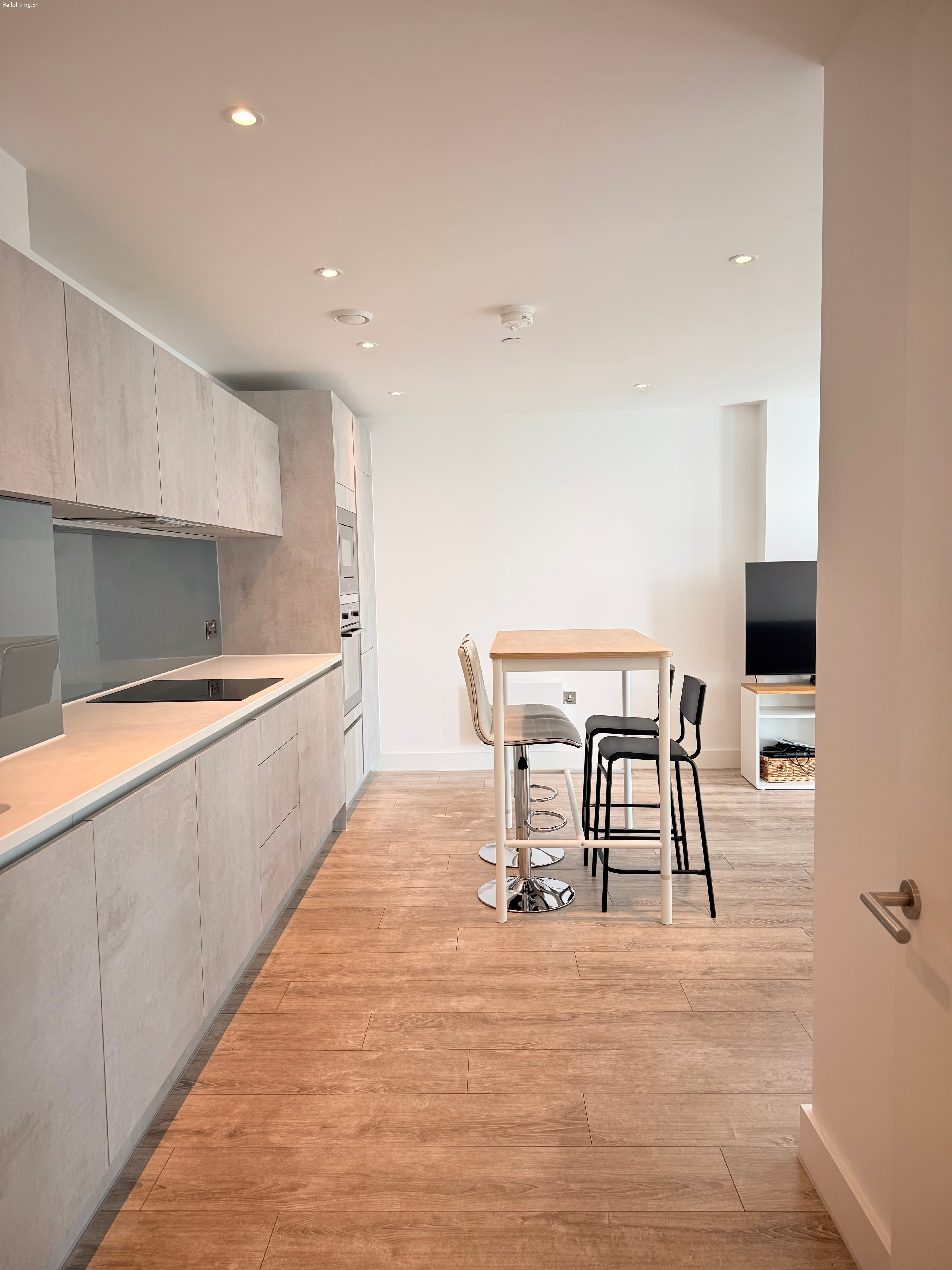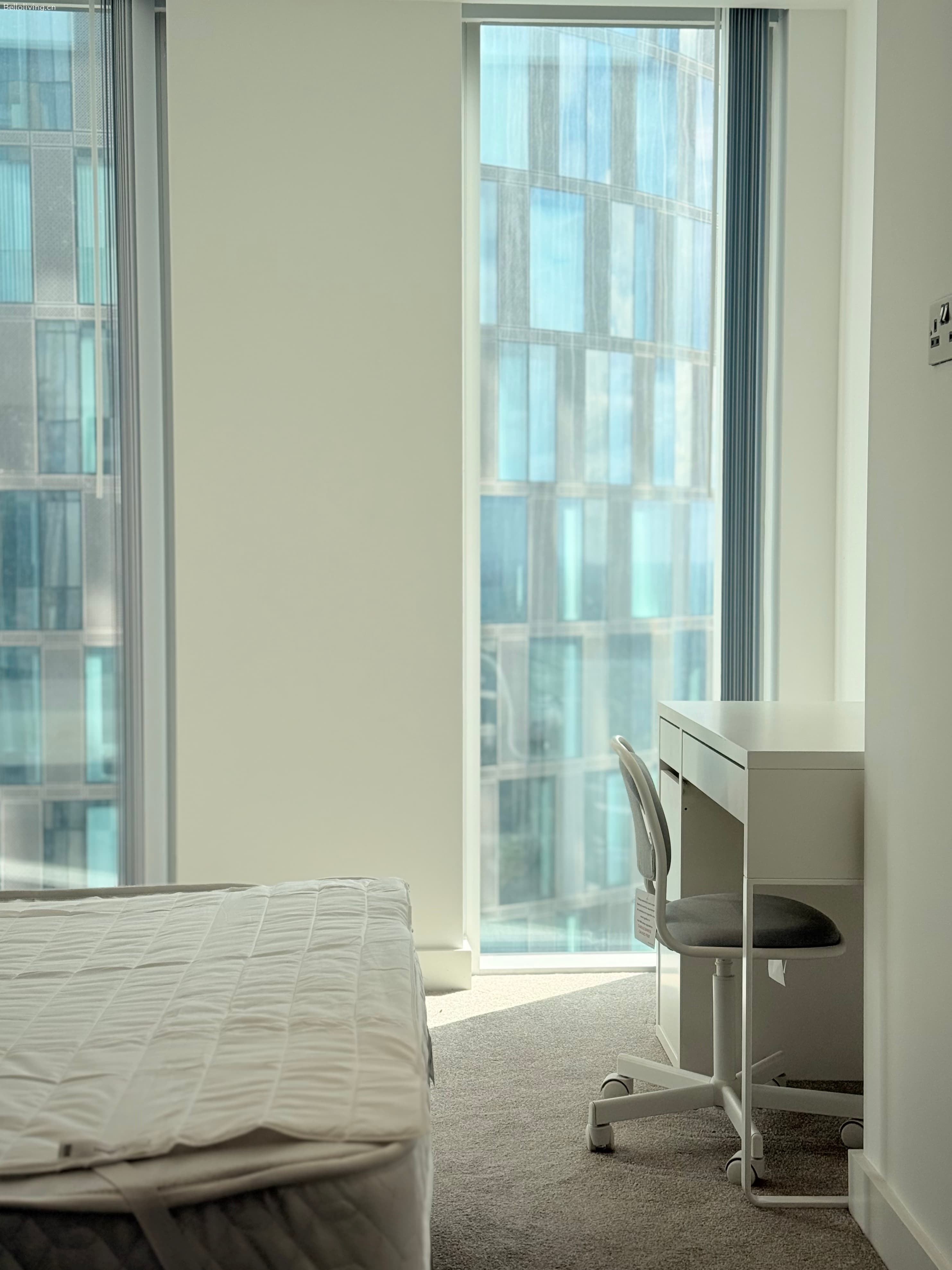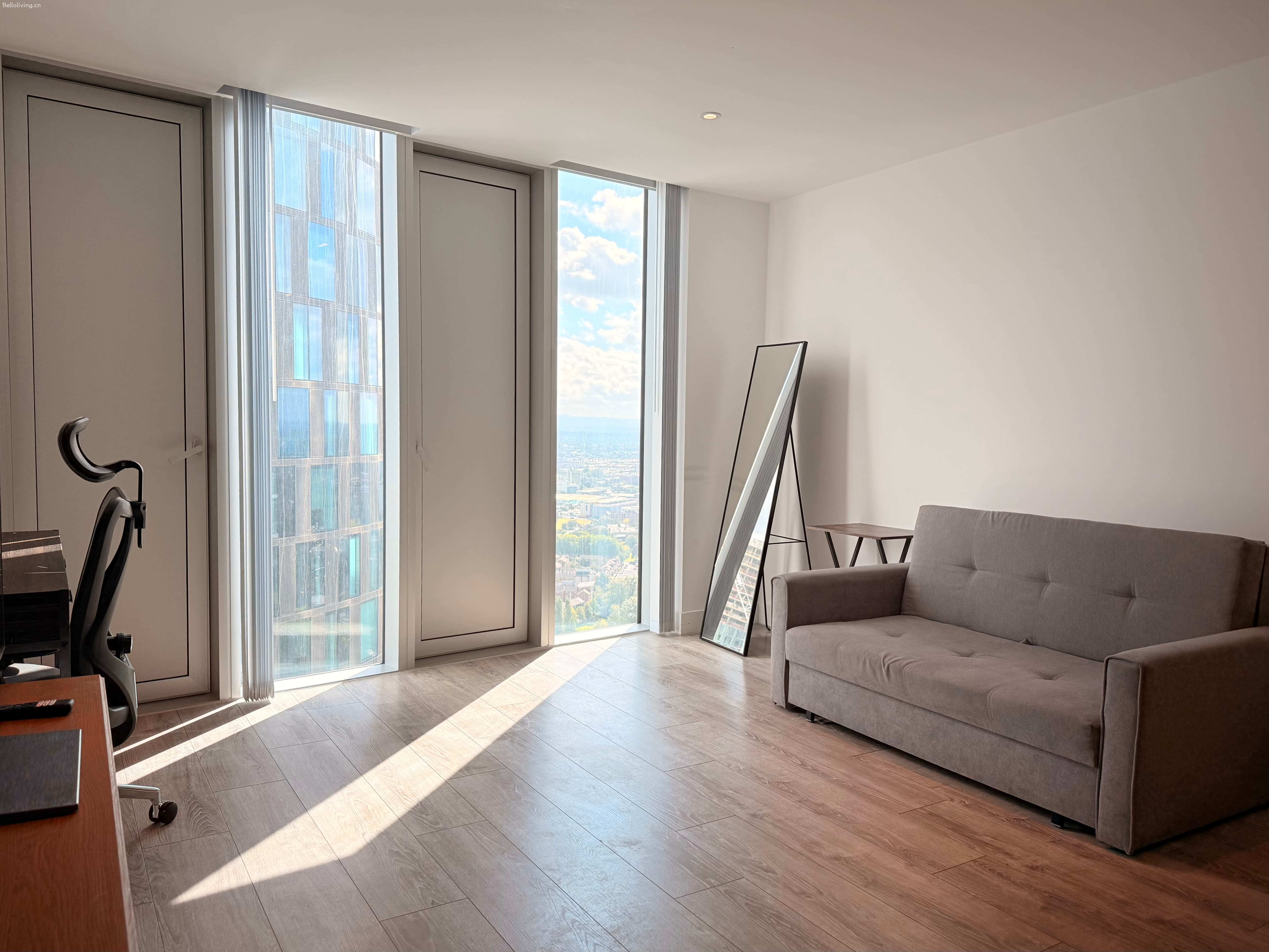 全部为落地窗,采光非常好,视野开阔。卧室配有双人床,床头柜和衣橱。厨房配备齐全,有烤箱、炉灶,洗碗机,冰箱、微波炉、餐桌椅等,还有很多的储物空间。宽大明亮的客厅、开放式厨房,配有舒适沙发、茶几。共享区域配有储物室,独立/免费洗衣机。
